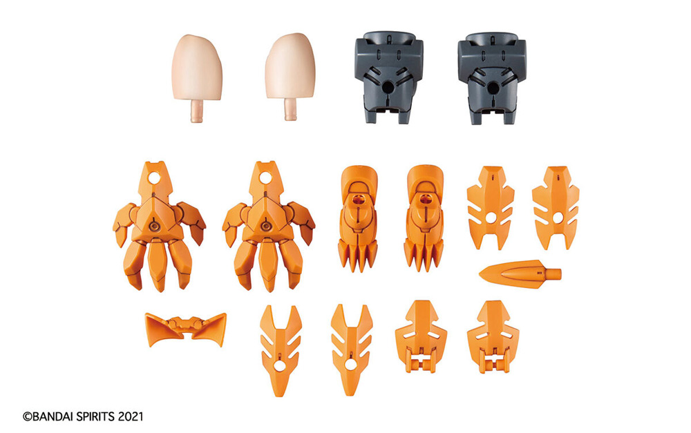 ・ ’脚部膝上パーツ’を介して、別売りの「30MM」シリーズのメカニカルな脚パーツが装着可能となっている。