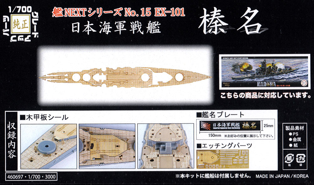 日本海軍 戦艦 榛名 木甲板シール & 艦名プレート (甲板シート)フジミ 1/700 艦船模型用グレードアップパーツ No.艦NEXT015EX-101 スケール:1/700