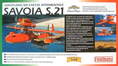「サボイア S.21 試作戦闘飛行艇 (映画紅の豚) プラモデル (ファインモールド 1/48 紅の豚 No.FG001 )」です●「サボイア S.21 試作戦闘飛行艇」を1/48スケールで再現したプラスチックモデル組立キット 【 サボイア S.21 試作戦闘飛行艇 (映画紅の豚) (ファインモールド 1/48 紅の豚 FG1) について 】●映画「紅の豚」に登場、1920年代末期のアドリア海、第一次大戦後に失業したパイロットたちからなる「空賊」達をこらしめるべく、元イタリア空軍のエース「ポルコ・ロッソ」が駆る深紅の(架空)戦闘飛行艇が「サボイア S.21」です ●この「サボイア S.21」は、もともとイタリア海軍向けに開発されましたが、その過激な性能ゆえに1機しか製造されず軍でも不採用となりました ●この機体は、ミラノにある航空機整備工場「ピッコロ社」に引きとられ、再調整、再整備されたものが「ポルコ」の手に渡たったのです ●劇中において、「ポルコ・ロッソ」はこの機体を自在に操り、空賊たち、そしてライバルとなる「ドナルド・カーチス」駆る「カーチス R3C 改造水上戦闘機」と激しい空戦を繰り広げるのです 【 サボイア S.21 試作戦闘飛行艇 (映画紅の豚) (ファインモールド 1/48 紅の豚 FG1) プラモデルの内容 】●この「サボイア S.21」を1/48スケールで再現したプラスチックモデル組み立てキット ●機体形状は宮崎駿監督の監修を得て、劇中の雰囲気を生かしながらリアルにモデル化、パーツ構成は必要最小限に抑えて作りやすいキットとなっています ●モノコック構造となっている機体内部の梁を一部再現しています ●操縦席、その前に配置された燃料タンク、イゾッタ・フラスキーニ・アッソV12エンジンなど、内部に渡るデティールまでも詳細に再現しました ●エンジンカバーは開閉させる事が可能です ●主翼のエルロン部は別パーツにて再現 ●風防はクリアーパーツで再現 ●プロペラはポリキャップにより可動させる事が可能です ●「サボイア S.21」用の台車も再現しています ●操縦席に座る「ポルコ・ロッソ」も付属 ●「ポルコ・ロッソ」の立像フィギュア+台座が付属 ●主翼のホワイト・グリーンの塗り分け、ポルコのエンブレム、台座用の「紅の豚」ロゴなどを再現したデカールが付属 ●詳細な解説を含めた組立説明書が付属 ●主な使用カラー:モンザレッド(C68)、サンディブラウン(C19) ●2004年完全新金型