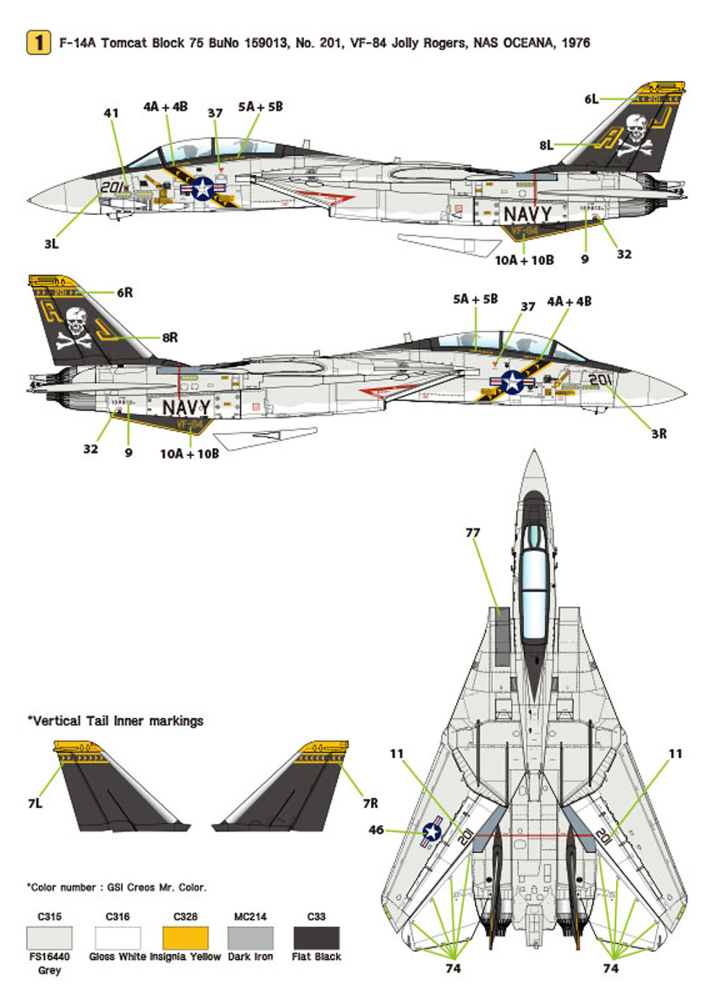 F-14A トムキャット VF-84 ジョリーロジャース USS ニミッツ 1978-79 デカール