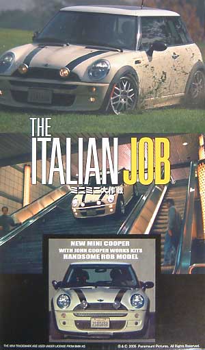 「ミニ クーパー w/ジョン・クーパー ワークス ハンサム・ロブ モデル プラモデル (フジミ ミニミニ大作戦 No.004 )」です●世界中に愛された初代の「ミニ」●このクラッシックミニの2代目モデルとして、旧ミニのコンセプトを受け継ぎながら、新たにプレミアムコンパクトとしての要素を盛り込み、2003年2月にフルモデルチェンジされたのがBMW社の「ミニ」です ●映画「ミニミニ大作戦」内に登場する「ミニ クーパー w/ジョン・クーパー ワークス ハンサム・ロブ モデル」を1/24スケールで再現したプラスチックモデル組み立てキット ●同社「ミニ クーパー w/ジョン・クーパー ワークス キット」をサンルーフ仕様とし専用デカールなどをセットしたバリエーションキットとなります ●「ボディ」と「ルーフ」は別パーツで構成、ボディカラーとルーフカラーとを塗り分けるミニのチャームポイントを表現しやすいパーツ構成としています ●前後バンパー、サイドスカートは別パーツで構成、バンパー、サイドスカートはオプションタイプのものを再現しています ●ルーフ部のパーツはサンルーフ仕様のものを再現、ルーフ部は開口されサンシールド用のクリアパーツが付属しています ●インパネ、ドアの内張りなど室内部は精密な彫刻を施されたパーツで表現されています ●エンジンレスモデルですが、車体下面にリアルな彫刻でエンジン部をも再現しています ●ダッシュボード部は「左ハンドル」仕様車のものが付属 ●ステアリング上の「2連メーター」「シングルメーター」のどちらかを選択して取り付ける事ができます ●ウインドガラスは全面別パーツとして外から取り付けることで実車と同じ仕上がりとなりました ●フロントグリル、ドアノブ、ライト基部、ミラー面などはメッキ仕上げのパーツを使用 ●ホイールは17インチホイールを再現したものが付属(シルバー仕上げ) ●サスペンション部は「標準」と「ローダウン仕様」を選択して組立てる事が可能です ●フロントグリルに備え付けられた2個のドライビングランプを再現したパーツも付属しています ●メッシュパーツが付属 ●ボンネットストライプ用のデカールが付属 ●「2SBI658」など劇中登場車のナンバープレート用のデカールが付属 ●ボディ成型色:ホワイト / 室内部のパーツなどの成型色:ホワイト