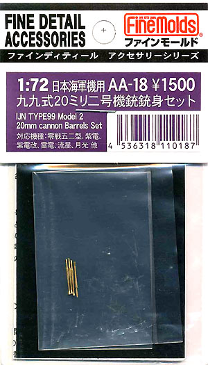 「99式 20mm2号機銃 銃身セット メタル (ファインモールド 1/72 ファインデティール アクセサリーシリーズ 航空機用 No.AA-018 )」です