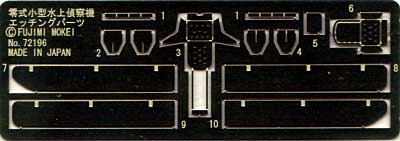 「零式小型水上偵察機 (E14Y) 第6艦隊付属偵察機 (エッチング付) プラモデル (フジミ 1/72 飛行機 (定番外) No.72196 )」です●「空技廠 E14Y 零式小型水上偵察機 第6艦隊付属偵察隊」を1/72スケールで再現したプラスチックモデル組立キット●同社「零式小型水上偵察機 第6艦隊付属偵察隊(C-026)」にエッチングパーツをセットしたデラックスバージョンとなります ●潜水艦用カタパルト(滑走車付)も再現しています ●風防はクリアパーツで再現 ●付属するエッチングパーツの内容は フラップ 補助翼 水中舵 安定翼 操縦席 偵察員席 となっています ●付属のデカールで 第6艦隊付属偵察隊 広島呉基地(昭和19年11月)所属機 「671-15」「671-05」「671-08」「671-10」「671-16」「671-11」 を再現する事が可能です ●スポット生産品