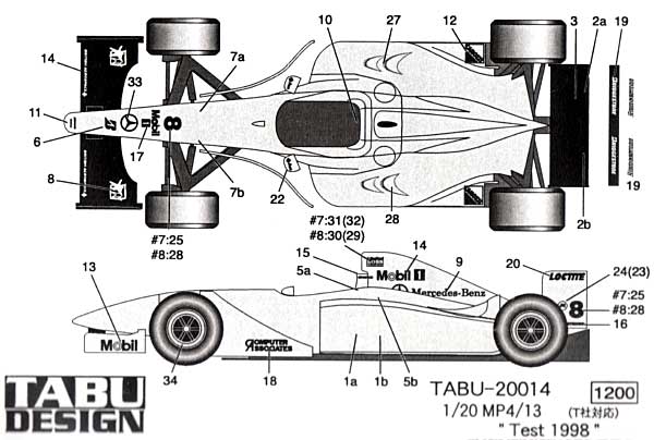 1/20 デカール マクラーレン MP4/13 テスト 1998 TABU DESIGN (タブデザイン)