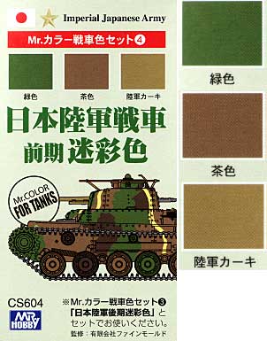 ●大戦前期の日本陸軍戦車に施されていた3色迷彩再現時には、「日本陸軍戦車 後期 迷彩色」(別売り)と併せて使用して下さい