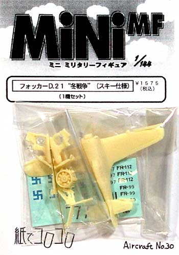 「フォッカー D.21 冬戦争 (スキー仕様) レジン (紙でコロコロ 1/144 ミニミニタリーフィギュア