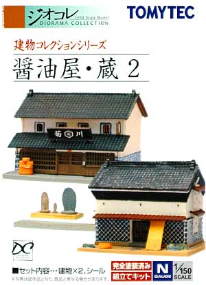 「醤油屋・蔵 2 プラモデル (トミーテック 建物コレクション (ジオコレ) No.224600 )」です●「醤油屋・蔵 2」を1/150スケールで再現したパーツ彩色済み組立キット●1/150スケールの「Nゲージ」サイズで展開する「建物コレクション(ジオコレ)」、シンメトリーな古典風建築の重厚な雰囲気を持つ銀行を再現した内容となっています ●細部の造作や質感までも再現された壁や屋根、塀や小物などを、ジオラマベースに差し込んでいくだけで簡単に組立てる事ができる接着剤不要の組立キット ・ パーツ類は既に塗装済となっておりますので、組立てるだけで1/150スケールのストラクチャーが完成します ・ 1/150スケールですので、Nゲージだけでなく、他のコレクションにも転用する事ができます ●街コレ第6弾「甲州街道」の建物を2軒セットのオープンパッケージ方式でご用意 ●初回生産分とは色違いのため、レイアウトの幅も広がります ●※旅籠は2010年5月以降発売予定 ●製品内容 ・ 建物 ・ 小物 ・ シール ●レイアウトサイズ ・ 醤油屋:W7 x D6cm ・ 蔵:W7 x D6cm