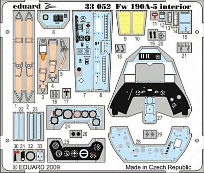 「フォッケウルフ Fw190A-5 用 インテリア エッチングパーツ (接着剤付) (ハセガワ対応) エッチング (エデュアルド 1/32 エアクラフト用 カラーエッチング ズーム (33-×) No.33-052 )」です