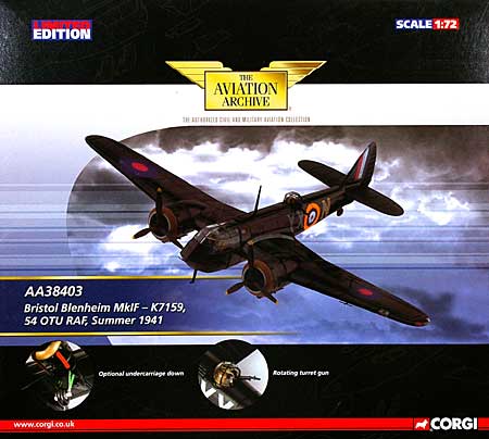 ブリストル ブレニム Mk.1F イギリス空軍 第54作戦訓練ユニット (1941年夏) (完成品)コーギー THE AVIATION ARCHIVE No.AA38403 スケール:1/72