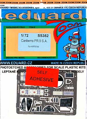 「キャンベラ PR.9用 計器盤・シートベルト エッチングパーツ (接着剤付) (エアフィックス対応) エッチング (エデュアルド 1/72 エアクラフト用 カラーエッチング ズーム (SS-×)