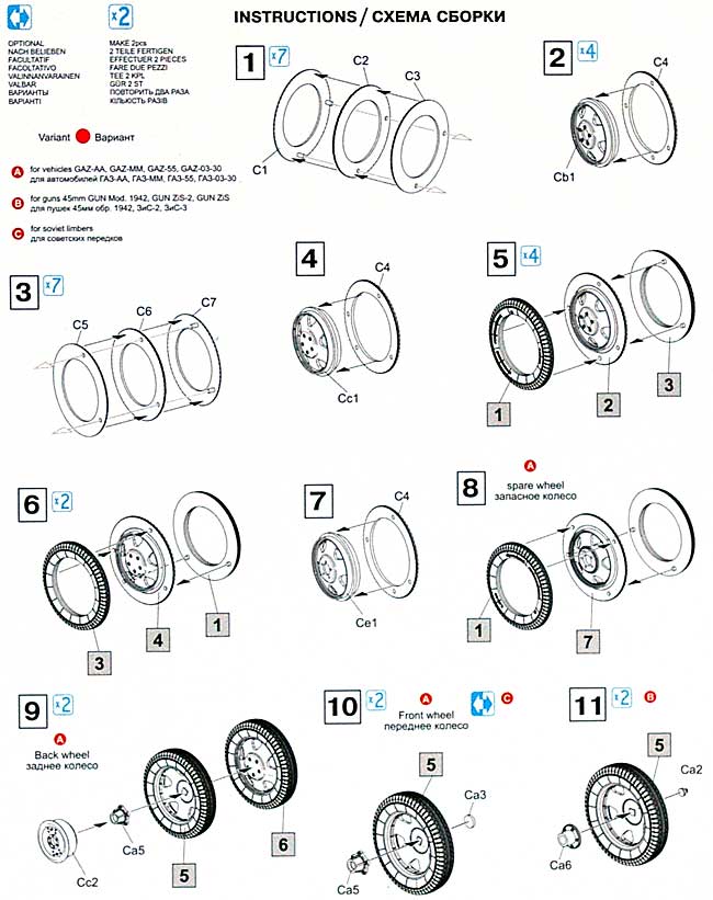 ●「ソビエト GAZトラック & 野戦砲用ホイールセット」を1/35スケールで再現したプラスチックモデル組立キット