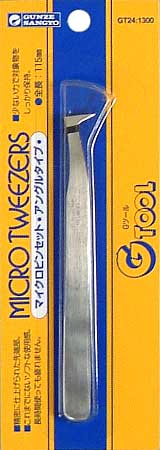 「マイクロピンセット (アングルタイプ) ピンセット (GSIクレオス Gツール No.GT024 )」です●Gツールマイクロピンセットシリーズは、これまでのピンセットよりもはるかに優れた使用感を提供します●柔らかいのにコシがあり、少ない力で対象物をしっかりと保持します ●長時間使っても疲れにくいピンセットです ●宝石類の分類・加工にも使用されており、先端の加工も万全の仕上りになっています ●「アングルタイプ」は、先端が約90度に曲がったタイプのピンセットです ●曲がった先端部で、細かなパーツを繊細な表面上に置いたり、入り組んだ部分へ細かなパーツを取り付ける時などに活躍します ●材質 ステンレスSUS314 バフ仕上げ ●磁性を帯びにくいので模型以外の用途にも使用する事ができます ●全長115mm