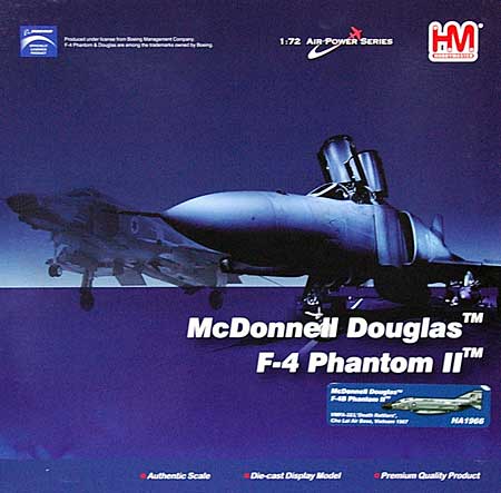 「F-4B ファントム 2 VMFA-323 デス・ラットラーズ 完成品 (ホビーマスター 1/72 エアパワー シリーズ (ジェット) No.HA1966 )」です●「F-4B ファントム 2 VMFA-323 デス・ラットラーズ 」です●1960年代以降、アメリカ海軍・海兵隊などで運用されていた複座型の戦闘攻撃機「F-4B ファントム 2」を1/72スケールで再現したダイキャスト製完成品モデル ●「アメリカ海兵隊 第323海兵隊戦闘攻撃飛行隊 デス・ラットラーズ」に所属、1967年のベトナム戦争時、ダナン南東のチューライ飛行基地に配備されていた「151463号機」を再現した内容となっています ・ 彩色済みの完成品モデルですので、パッケージから取り出して、そのままディスプレイすることができます 【 「F-4B ファントム 2 VMFA-323 デス・ラットラーズ」の製品内容について 】●このベトナム戦争時のアメリカ海兵隊に所属していた「F-4B ファントム 2」を再現したダイキャスト製完成品モデル ●「F-4B ファントム 2」の特徴となるフォルムを再現 ・固定武装のない短い機種部を中心に、コクピット直下左右に配置されたエアインテーク、デルタ状に広がった低翼型の主翼、鋭く広い一枚の垂直尾翼とエンジン後流に干渉しない様大きな下反角を付けて配置された水平尾翼など「F-4B」のシルエットを再現しています ・ 機体全体にある主なパネルラインは凹モールドで再現、スミ入れ処理は施されていません ●機体全体はガルグレーとホワイトのハイビジ塗装を再現 ・ 機体はベトナム戦争当時の2色の塗り分けによるハイビジ塗装を再現、国籍マークや部隊マーク類も鮮やかなハイビジ塗装、加えてウォークラインなども塗り分けされています ・ 尾翼の部隊シンボル、国籍マーク、機体番号などがタンポ印刷にて再現されています ・ 垂直尾翼の方向舵には「ガラガラヘビ」のシルエットを描いた部隊マークが記されています ●キャノピーは開閉させることが可能 ・ キャノピーパーツは2種付属、パーツの交換と可動により開閉状態を再現します ・ 前席は開・閉交換式、後席は可動部品による開閉となっています ・ 着座姿勢のパイロットフィギュア×2が付属しています ●ランディングギアは差し替え式、パーツの差し替えにより「飛行状態」と「地上待機状態」のいずれかを再現する事ができます ・ ギアカバーは「飛行状態」の物はワンピース、「地上待機状態」の物はランディングギア付属部と機体付属部の2ピースで構成されています ●「F-4B ファントム2」の機外兵装として ・ AIM-9 サイドワインダー ×4 (マルチエジェクターラックに2発ずつ搭載) ・ AIM-7 スパロー ×4 (機体下面に半埋め込み式に搭載) ・ Mk.82通常爆弾 ×6 (マルチエジェクターラックに3発ずつ搭載) ・ 胴体タンク ×1 ・ パイロンタンク ×2 が付属しており、所定の場所へと取り付ける事ができます ●飛行姿勢で飾る事ができる「ディスプレイスタンド」が付属 ●「F-4B ファントム 2」の機体サイズ ・ 全長 : 250mm ・ 全幅 : 160mm 【 「F-4B ファントム 2 VMFA-323 デス・ラットラーズ 」のパッケージ内容 】・ F-4B ファントム 2 ×1 ・ AIM-9 サイドワインダー + マルチエジェクターラック ×2セット ・ AIM-7 スパロー ×4 ・ Mk.82通常爆弾 + マルチエジェクターラック ×2セット ・ 胴体タンク ×1 ・ パイロンタンク ×2 ・ パイロットフィギュア ×2 ・ ディスプレイスタンド ×1 ●ダイキャスト製 彩色済完成品モデル ・ 一部プラスチックを使用している箇所があります ・ パイロット、主脚の交換、ミサイルなどの兵装の装着は機体にはめ込む形で取り付けて下さい