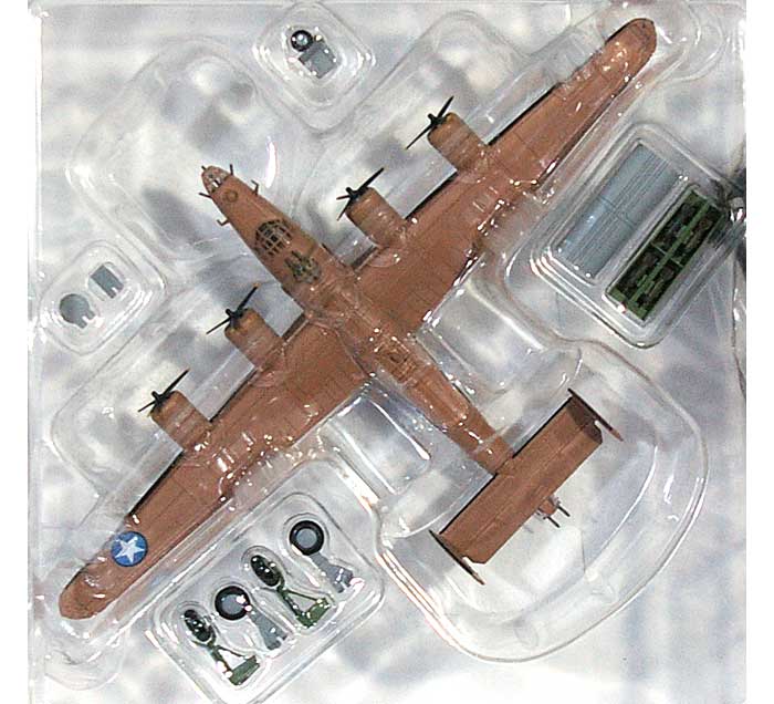 「B-24D リベレーター レディ・ビィ・グッド 完成品 (ホビーマスター 1/144 エアパワー シリーズ (レシプロ) No.HA9101 )」です●「B-24D リベレーター レディ・ビィ・グッド」です●第2次世界大戦中、アメリカ陸軍航空隊で運用されていた4発の大型爆撃機「B-24D リベレーター」を1/144スケールで再現したダイキャスト製完成品モデル ●1943年、「アメリカ陸軍航空隊 第376爆撃グループ 第514爆撃飛行中隊」に配備された機体番号「16/124301」号機、機種右側面に「Lady Be Good」と白文字で書いた「B-24 リベレーター」を再現した内容となっています ・ 1943年、北アフリカからイタリアのナポリへの爆撃任務中、サハラ砂漠に不時着し、乗員たちが生還を期して130キロもの絶望的な彷徨の末全滅した悲劇の機体を再現しました ・ 1958年に大破した機体が発見され、乗員数名の遺体が回収されています ●彩色済みの完成品モデルですので、パッケージから取り出して、そのままディスプレイすることができます 【 「B-24D リベレーター レディ・ビィ・グッド」の製品内容について 】●「B-24D リベレーター」を再現した完成品モデル ●大アスペクト比の機体に四発のエンジン、空気抵抗の少ないシャッター式の爆弾槽を持つ太い胴体、そしてコンソリーテッド社の機体のシンボルともいえる双垂直尾翼など「B-24D リベレーター」の特徴を再現しています ・ 機体全体にある主なパネルラインは凹モールドで再現、スミ入れ処理は施されていません ●機体上面はデザートピンク、機体下面はニュートラルグレーの2色塗装、アメリカ陸軍航空隊の地中海塗装を再現し、防氷ブーツなどの部分も塗り分けされています ・ 機種に書かれた機体番号「白64」、機種右側面に書かれた「Lady Be Good」の白文字、国籍マーク、垂直尾翼の機体番号などがタンポ印刷にて再現されています ・ ウェポンベイや脚庫の内側は機体内部色で塗装されています ●コクピットや主要な機銃座部分はクリアパーツで再現、窓枠は機体の基本塗装に合わせて塗り分けされています ・ 各部シートが再現されています ・ 一部の小窓については塗装での再現となっております ●プロペラは回転させることが可能 ●ウェポンベイはパーツの差替えで開閉状態を状態を再現することとができます ●ランディングギアはパーツの差替えにより「飛行状態」と「駐機状態」のいずれかを再現する事ができます ・ 脚カバーは脚柱に取り付けられた状態で構成 ![]() ●「B-24D リベレーター」の兵装として ・ 爆弾 ×8 が付属しており、展開状態のウェポンベイパーツにあらかじめ取り付けられています ●飛行姿勢で飾る事ができる「ディスプレイスタンド」が付属 【 「B-24D リベレーター レディ・ビィ・グッド」のパッケージ内容 】・ B-24D リベレーター ×1 ・ ディスプレイスタンド ×1 ●ダイキャスト製 彩色済完成品モデル ・ 一部プラスチックを使用している箇所があります ・ 主脚、ウェポンベイの交換は機体にはめ込む形で取り付けて下さい