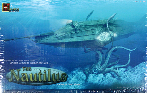 「ノーチラス号 プラモデル (ペガサスホビー プラスチックモデルキット No.9120 )」です●ジュール・ベルヌの小説「海底2万里」に登場する潜水艦「ノーチラス号」を1/144スケールで再現したプラスチックモデル組立てキット ●「海底2万里」の原作をイメージソースとしてオリジナルデザインとして「ノーチラス号」を再現、魚類を想像させるシルエットと衝角を持ち、原作が書かれた19世紀の技術をベースとしたリベット接合が多用された船体が表現されています 【 「ノーチラス号」について 】●「ノーチラス号」は、フランス人の小説家「ジュール・ベルヌ」が1870年に書いたSF小説「海底2万里」に登場する架空の潜水艦で、ストーリー自体はこの「ノーチラス号」を中心に展開します ●「ノーチラス号」は、元インド王子で技術者の「ネモ船長」によって設計、船体各部の部品の製造は世界各国で行われましたが、その全体は船長の部下によって無人島において秘密裏に建造されています ●「ノーチラス号」の動力は全てが電力によって賄われ、その電力を供給する電池の電解反応は海水によって行われています ●同艦の排水量は約1500t、最大速力は50ノットを発揮、主要武装は艦首部分に装備された衝角(ラム)であり、これを船の側面に突き刺すことにより船底部に穴を開け、撃沈する方式でした ・ 小説が書かれた当時は、まだ魚雷が開発されていませんでした ●艦内には、潜水艦としての乗務員室や食堂、機関室などの他に、「ネモ船長」の私室として広い空間が用意され、船長の私物や財宝、パイプオルガンなども収蔵されています ●「ノーチラス号」は、上記のような諸元や詳しい解説が書かれているものの、小説という関係から元となる完璧なデザイン画はなく、今まで様々な想像図が描かれてきました ●しかし、大まかなデザインは定まっており、海中生物である「一角」を想像させるフォルム、そして直線を基調としたリベット構造で、キット自体は「ペガサスホビー」社オリジナルですが、原作のイメージに沿ったものとなっています 【 「ノーチラス号」のキット内容について 】●この小説「海底2万里」に登場する潜水艦「ノーチラス号」を再現したプラスチックモデル組立てキットです ●「ペガサスホビー」社のオリジナルデザインにより「ノーチラス号」を再現、船体のリベット表現、手摺り、船内の様子、側面の窓など、ディテール感豊かに同艦を表現した内容となっています ●船体はインジェクションプラスチック製、手摺り、ラッタルなどはエッチングパーツ製となります ●「ノーチラス号」の船体は左右分割式で、側面のガラス部はクリアーパーツです ・ 船体表面にはリベット構造と排水口が細かなモールドで表現されています ・ ガラス部には特徴的な枠がモールド ●側面のガラス部分から見える範囲の船内(「ネモ船長」の私室)が再現、ソファや本棚などの内装が表現されています ●上甲板部の手摺り、ラッタル、船体の張り線などを再現するエッチングパーツが付属しています ●「ノーチラス号」に巻きつく巨大イカを再現したディスプレイスタンドが付属しています ・ イカの足で「ノーチラス号」を支える構造となっています ・ ディスプレイスタンドは軟質素材で、イカの各部の吸盤もリアルに再現されています 【 「ノーチラス号」のパッケージ内容 】・ 潜水艦「ノーチラス号」 ×1 ・ ディスプレイスタンド(ネーム入り) ×1 ●2013年 完全新金型