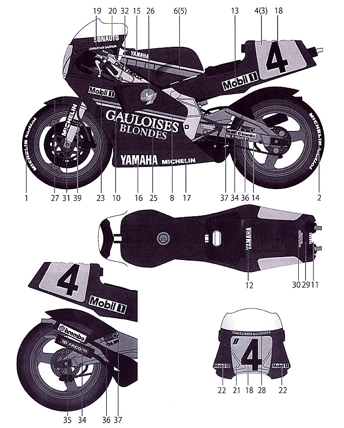 タブデザイン 1/12 デカール ヤマハ YZR500 #3/5 1989