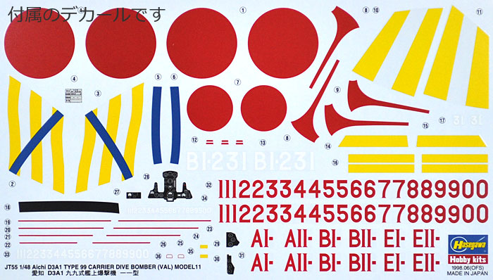 「愛知 D3A1 99式艦上爆撃機 11型 フォールディング ウイング プラモデル (ハセガワ 1/48 飛行機 限定生産 No.CH042 )」です