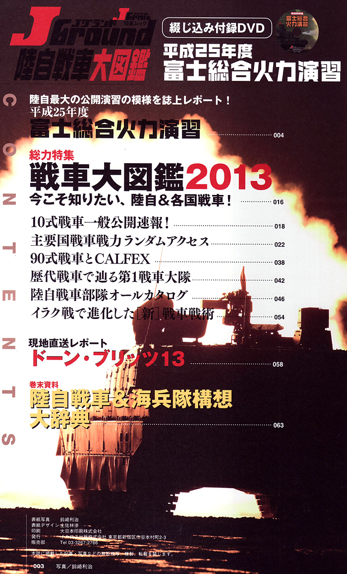 ●「Jグランド 陸自戦車大図鑑」では、この「平成25年度富士総合火力演習」を取材、演習の迫力映像を収録したDVDを付録させました