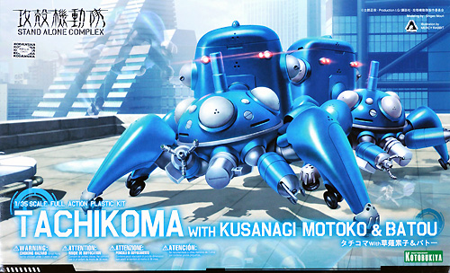 「タチコマ with 草薙素子 & バトー プラモデル (コトブキヤ 攻殻機動隊 No.KP-294 )」です●「タチコマ With 草薙素子 & バトー」を1/35スケールで再現したプラスチックモデル組立キット ●コトブキヤ「攻殻機動隊シリーズ」に大本命の「タチコマ」がラインナップ! ●多脚戦車「剣菱重工 HAW206」試作車ver.と同じ1/35スケールでの立体化です ・ コミカルでありながらメカニックとしてのリアリティを重視した設定を、余すことなく再現しました ・ 外観はもちろん、コクピット内部までこだわりの造型で再現した他、後部コクピットハッチおよび上部ハッチは、差し替えなしで展開が可能。同スケールの未塗装フィギュア「草薙素子」を搭乗姿勢で再現しています ・ さらにお馴染みの「バトー」や、9課を抜け出したタチコマが出会った少女「ミキ」が付属するなど、充実した内容 ・ 「ミキ」はタチコマの頭上に乗せてディスプレイすることができます ・ 小サイズながら高密度な1/35プラキット「タチコマ」をぜひお楽しみください ●付属品 ・ タチコマと同じ1/35スケール未塗装フィギュア「草薙素子(座り)」「バトー(立ち)」「ミキ(座り)」が付属致します ・ 12.7mmガトリングガンや天然オイル、50mmグレネードランチャーの砲弾などのオプションパーツが付属 ・ 一部パーツの差し替えで天然オイルの注入シーンを再現することが可能です ・ 付属の専用スタンドを使用することで、より安定したディスプレイが可能です ●ギミック ・ 後部コクピットハッチおよび上部ハッチは差し替えなしで展開が可能。同スケールの未塗装フィギュア「草薙素子」を搭乗姿勢で再現しています ・ 9課を抜け出した「タチコマ」が出会った少女「ミキ」を頭上に乗せることが可能です ・ 50mmグレネードランチャーはカンヌキを引き抜くことで砲身のカバーを取り外し、砲弾パーツを装填することができるようになるほか、付属の12.7mmガトリングガンへと装備を変更して楽しめます ・ 特徴的な頭部センサーはボールジョイントにより自由に可動いたします ・ 差し替えパーツの使用によりメカニカルベース フライング3に対応いたしますので様々なシチュエーションでディスプレイが可能です ●全高:約65mm ●全長:約85mm ●原型製作:毛利 重夫
