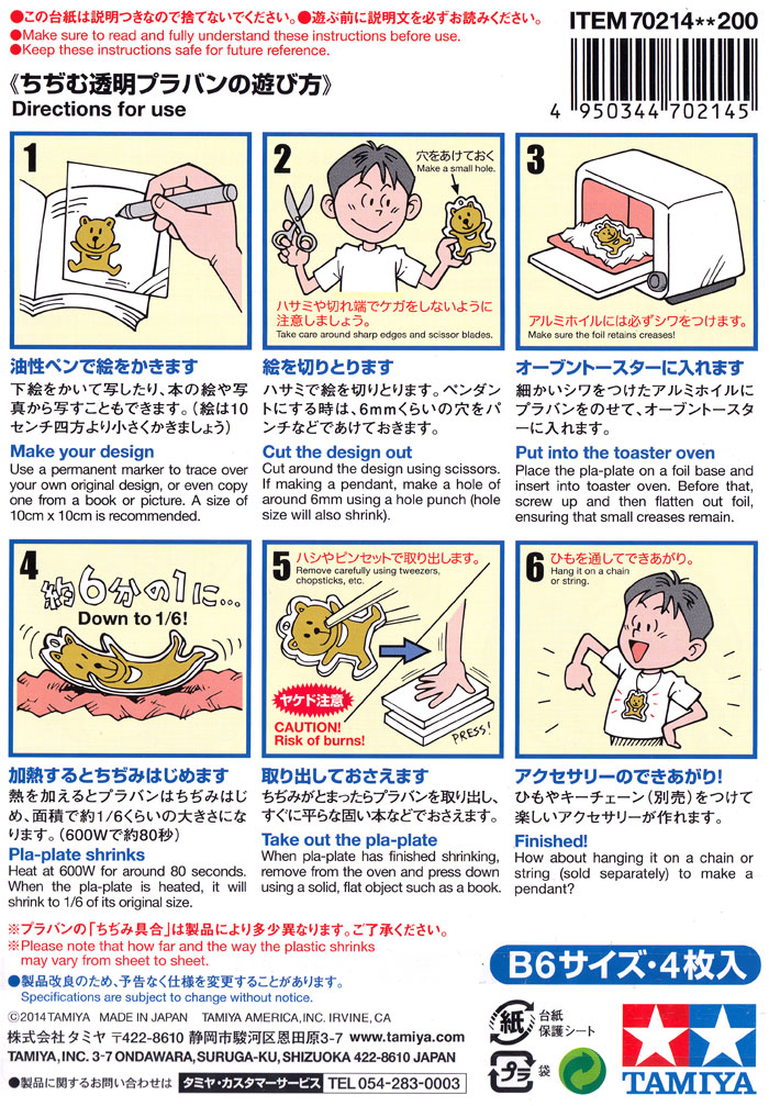 「ちぢむ透明プラバンセット B6サイズ (4枚) プラ材 (タミヤ 楽しい工作シリーズ No.70214 )」です