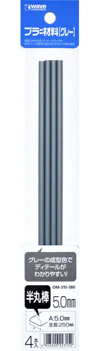 「プラ=材料 (グレー) 半丸棒 (5.0mm) プラスチック棒 (ウェーブ マテリアル