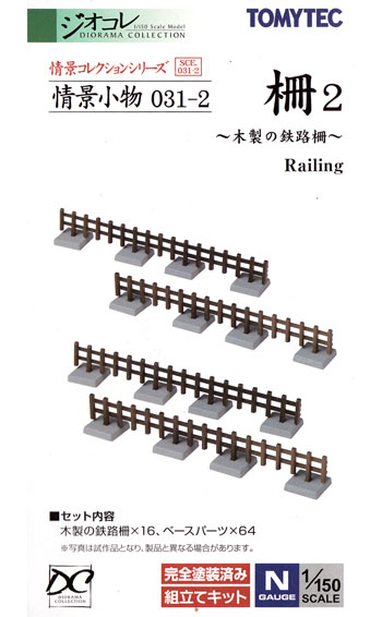 「柵 2 -木製の鉄路柵- プラモデル (トミーテック 情景コレクション 情景小物シリーズ No.031-2 )」です●1/150スケールの「Nゲージ」サイズで展開する「情景コレクション」、線路脇の敷地境界線部分に設置される木製の鉄道柵を1/150スケールで再現した「柵 2 ~木製の鉄路柵~」です ●「建物コレクション」や「情景コレクション」などと共に、1/150スケールのNゲージサイズの建物・構造物として活用する事ができる接着剤不要の組立キットが「情景コレクションシリーズ」です ●私たちが生活する街の中で見かける風景を再現するため、建物を始めとした多種多様な街の構成要素を手軽に再現する事ができます ・ パーツ類は既に塗装済となっていますので、組立てるだけで1/150スケールのストラクチャーが完成します ●1/150スケールですので、Nゲージだけでなく、他のコレクションにも転用する事ができます 【 「柵 2 ~木製の鉄路柵~」のキット内容について 】●「柵 2 ~木製の鉄路柵~」は、線路脇の敷地境界線部分に設置される木製の「鉄道柵」を再現 ●本パッケージには ・ 鉄道柵 ×16 ・ ベース ×64 をセットしています ●「鉄道柵」は、高さ約1.5mのタイプを再現しています ・ 「鉄道柵」は、人や動物が容易に線路内に立ち入るのを防ぐために、線路の敷地と隣接地との線路側の境界部分に設置されます ・ ただし、このような木製の「鉄道柵」は、地方路線やローカル線、そして高台などで線路部分に入るのが難しい場所が中心で、都会に近づくにつれ金網状のフェンスが使われるようになります ●「鉄道柵」の下部の4箇所には、ダボが付いており、各ベースのダボ穴に差し込んで組立てます ●建物の雰囲気を再現するために、パーツにウェザリング処理を施しています ●レイアウト概寸 : 幅7 ×奥行き1 ×高さ1 (cm) 【 「柵 2 ~木製の鉄路柵~」のパッケージ内容 】・ 鉄道柵(木造) ×16 ・ ベース ×64 ●製品素材 ・ 本体、ベース : ABS --------------------------------------- 【 「ジオコレ 情景小物シリーズ」について 】●昭和から現代に至るまで、都市や郊外など様々な場所で見かけたことのある「造作物」を1/150スケールで再現したシリーズが「ジオコレ 情景小物コレクション」、私たちが生活する街の中で見かける風景を再現するため、多種多様な街の構成要素を手軽に再現する事ができます ・ 線路周りの「踏切」や「柵」、街並みに必須の「電柱」、公園の「遊具」にお祭りの情景、さらに海にまつわる「漁船」や「消波ブロック」など、建物の存在を引き立て情景シーンにリアルさを加えてくれる造作物を再現しています ●パーツは塗装済み、部分的にウェザリングも施され、はめ込むだけで簡単に組立てることができるので、誰でも街の造作物の完成品を楽しむことができます ●対象となった造作物が持つ特徴的な形状、質感なども再現するだけでなく、情景に合わせたシール類も付属し、「建物コレクション」などと組み合わせて1/150スケールながら実感ある町並み再現することができる内容となっています ●トミーテック社の「建物コレクション」や情景コレクション「ザ・人間」「ザ・動物」、「カーコレクション」「トラックコレクション」「バスコレクション」などと組み合わせて、情景世界を広げることができるのも魅力となっています