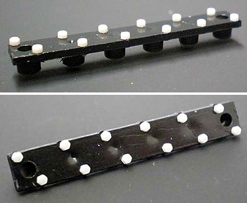 ●六角ボルト脚部の直径は0.5ミリとなっており、0.55〜0.6ミリのピンバイスで差込穴を開けると丁度良くセット出来るようになっています。いざとなれば脚部を全て切り取って、セットすることも可能です