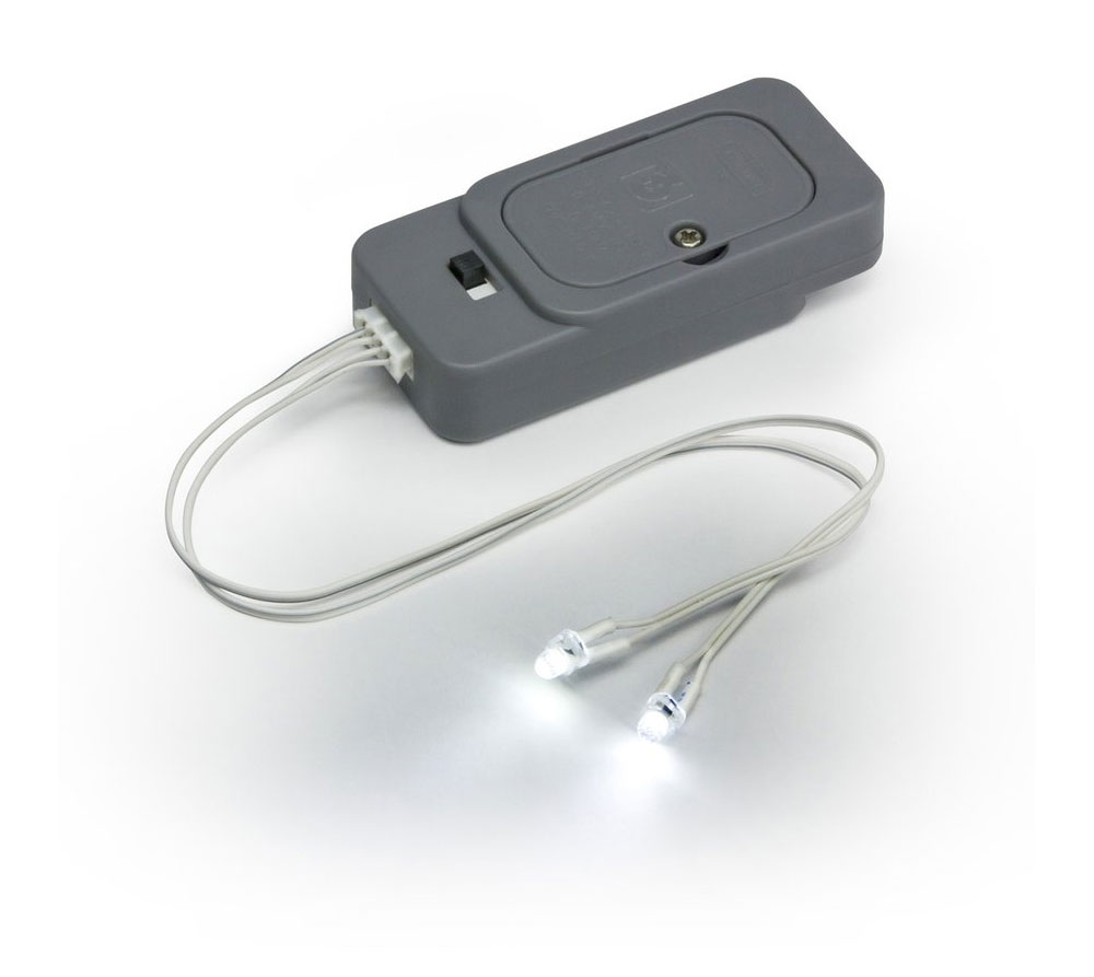 「発光ユニット (白) 2灯式 LED (バンダイ 発光ユニット No.2389105 )」です●プラモデルのプレイバリューを広げる発光ユニットが登場! ●白色に光るLEDを2個付属。 ●スイッチと一体型の電池ボックスで、キットに組み込むだけで電飾可能。 ●点灯には別売りのボタン電池「LR44」が3個必要です。 【対応商品】 ・ 1/2 BB-8 ・ 1/1000 地球連邦主力戦艦ドレッドノート級 ドレッドノート など