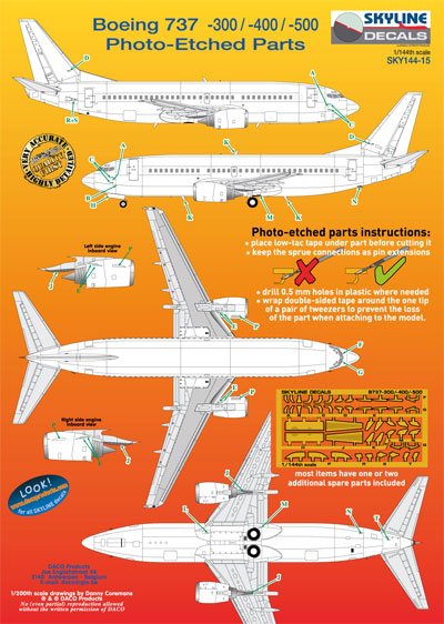 ボーイング 737-300/-400/-500 エッチングパーツ (エッチング)DACO SKYLINE DECALS No.SKY144-15 スケール:1/144