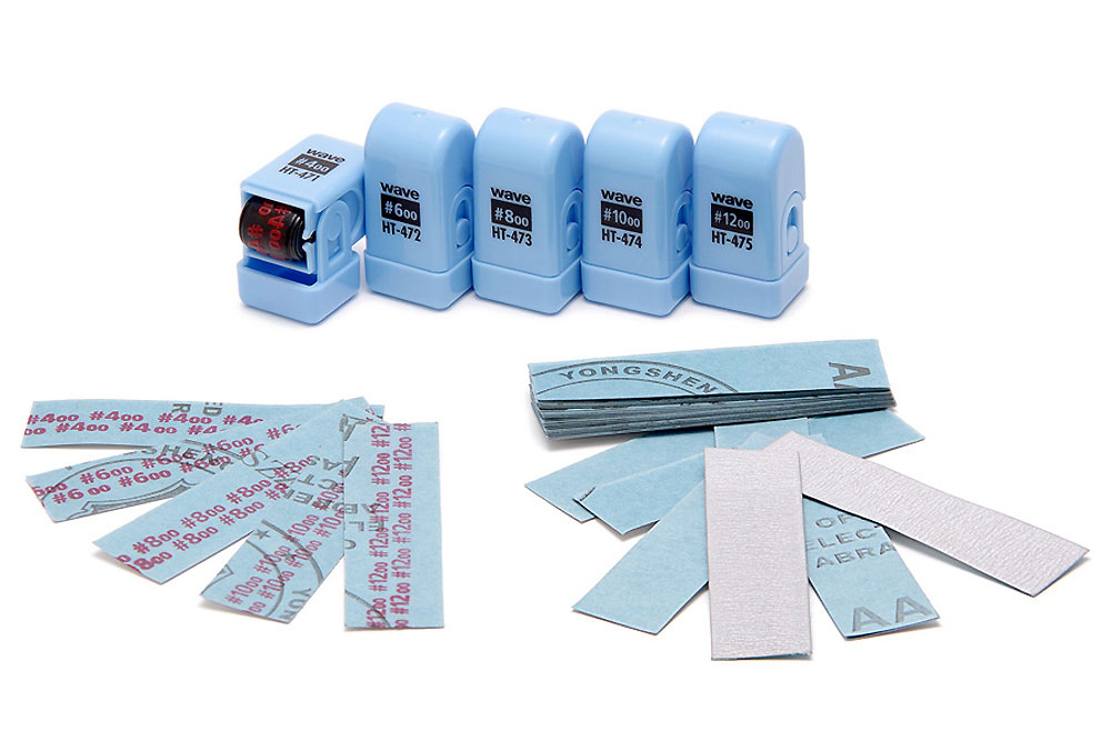 ・ 模型製作でひろく使用されている紙やすり番手#400 / 600 / 800 / 1000 / 1200用の5種をラインナップしました。
