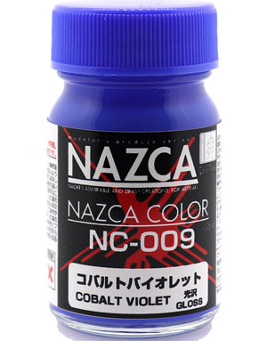 「NC-009 コバルトバイオレット 塗料 (ガイアノーツ NAZCA カラー No.30726 )」です●原型制作、模型誌の作例などで活躍中の「NAOKI」氏がプロデュースするブランド「NAZCA」から、「NAOKI」氏が雑誌作例などをする際、調色して使用する色調を再現可能なカラーが「NC-009 コバルトバイオレット」です。 ●「NC-009 コバルトバイオレット」は、ロボットやキャラクターモデルで多用する鮮やかな「コバルトブルー」に調整したカラー、ロボット本体のベースカラーを始め様々な場所で使用可能な塗料です。 ●「NC-004 ミリオンブルー」よりも青味を強く、赤に寄った発色の良いブルー、近年NAOKI氏が製作する作例にも頻繁に使用されている色になっています。 ■ NC-009 コバルトバイオレット 概要 ・ 色名 : NC-009 コバルトバイオレット ・ ツヤ加減 : 光沢 ・ 品番 : 30726 ・ 内容量 : 15ml ・ 種類 : ラッカー塗料 【 ガイアノーツ NAZCAシリーズ カラーについて 】●「ガイアカラー」を始め、「Mr.カラー」や「タミヤカラー」など、非常に多くの種類の塗料が市販されていますが、赤や青、白やグレーといった複数の異なる色相で構成されてるロボットやキャラクターモデルを塗装しようと思った時、こんなにも多数にある塗料の中から、ぴったりとした相性の良い色同士を選択することは意外なほど難しいことに気づきます。 ●いわば学校の絵の具セットの基本色を基準にして発展してきた模型用の塗料は、艦船やAFVといったプラモデルのブームに合わせるようにして、そこで使用されているミリタリー系の実色を取り込みつつ、彩度や明度の調整は個人の感覚に任せるようにして色数を増やしてきました。 ●プラモデルのジャンルとしてAFVや艦船、飛行機、カーモデルといった、いわゆるスケールものと呼ばれるジャンルは依然根強い人気を持続しており、ミリタリー色や実車の色をプラモデル用の塗料へと反映する試みは相変わらず旺盛です。 ●一方で、スケールジャンルを凌駕する勢いでユーザーを増やしているのがロボットやフィギュアなどのキャラクターモデルのジャンルである事は、プラモデル売り場の面積比率を見れば一目瞭然なのですが、組立説明書には一部のキャラクターモデルを除き、相変わらずミリタリー色等を調色して使用するといった指定しかされていません。 ・ ただ、塗料の指定は誰でも入手しやすい塗料を指定せざる得ず、流通の都合上、やむなく広く市場に出回っている塗料を指定せざるを得ないといった事情もあり、これを否定できない側面もあります。 ●このような指定を基準にすると、キャラクターモデルの塗装をする時は、止む無くミリタリー系の塗料を応用するしか術がなく、ユーザーの要望に応えるように、過去にはボックスタイプの「ガンダムカラー」などのアニメカラーも販売されていましたが、特定のロボットの指定色を調色したものであるため汎用性に欠け、また、ほとんどがスポット生産で終わってしまい継続的な使用はできませんでした。 ●もちろん、キャラクタージャンルにおいてミリタリータッチを反映させ「実存するもの」と仮定して塗装することは正解であり、ウェザリングなどを加えて「リアル」っぽく仕上げるのは完成時の満足度を高めてくれます。 ・ しかし、イラストやアニメーションの表現が進むにつれ、「存在するもの」だけでなく「2次元の架空のもの」も「リアル」へと近づきつつある中、たとえば赤や青、白がベースカラーになるキャラクターモデルの塗装には、もっと明るく、発色の良い色調で塗装をするのが「オレのリアルである」といった嗜好も強くなり、また、鮮やかな色調で整えられた塗装は素直に「格好良く」、かつ、人を魅了させてくれます。 ●ところが、鮮やかなお気に入りの塗料に合わせて、クリアカラーや純色カラーを使って明度や彩度を合わせるように他の色を調色するのは難しく、上手くいかないと部分的に色が浮いたり、沈んだりと、折角の作品が今一つバランスの取れないものになってしまいます。 ・ そもそも今ある塗料では調色を行おうにも選択肢が少なく、ベースカラーとしてマッチするものが見当たらなかったり、色を創ろうと思っても職人的な感覚が必要になってしまい、そこまで色を追求できるスキルは、「色彩設計」のようなその道のプロでもない限り、誰もが持っているものではありません。 ●プラモデル市場の大多数をキャラクターモデルユーザーが占めていると思える現在、ガイアノーツはユーザーの潜在的な要望をすくいあげるかのように「ボトムズカラー」や「ダグラムカラー」「エヴァンゲリオンカラー」といったアニメ指定色、「電脳戦機バーチャロンカラー」や「フレームアームズガール カラー」といったデザイナー指定色、いわば2次元世界のカラーを積極的に展開、彩度、明度共にバランスのとれた色を常時入手できるようにして、誰もが手軽にかつ自在に「オレ的なリアル」や「鮮やかな色の組み