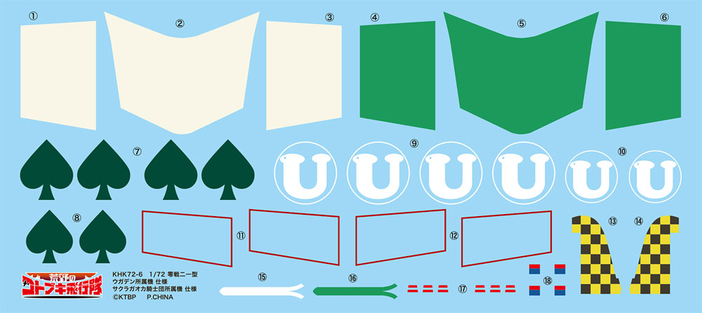 ●劇中に登場した「零戦二一型」をUのマークと尾翼のチェッカー柄が特徴的なウガデン所属機と、スペードマークが映えるサクラガオカ騎士団所属機の、どちらかを選択して仕上げられる2in1キットでモデル化。
