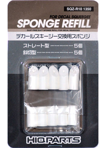 「デカールスキージー 交換用スポンジ スポンジ (HIQパーツ スジボリ・工作 No.SQZ-R10 )」です【「デカールスキージー交換用スポンジ(計10個入)」について 】●デカールスキージー(型番:SQZ)専用の替えスポンジです。 ●スポンジが水を弾くようになったり、水を吸わなくなるなど、親水性が落ちてきたらスポンジの交換が必要です。 ●デカールスキージーを、水、及びデカール用添加剤(水溶性)のみに使用している場合は、 水やぬるま湯で洗浄が可能です。交換前にお試しください。 ●デカールスキージーは、両端の軸の長さが異なります。パッケージの図を参考に正しい側、向きで取り付けてください。 【「デカールスキージー交換用スポンジ(計10個入)」製品仕様 】●ストレート型・斜切型…各5個