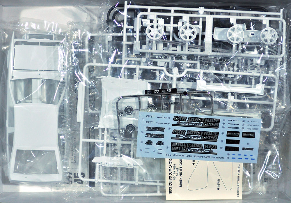 ●「カーブティッククラブ AE86 トレノ '85 (トヨタ)」を1/24スケールで再現したプラスチックモデル組立キット。