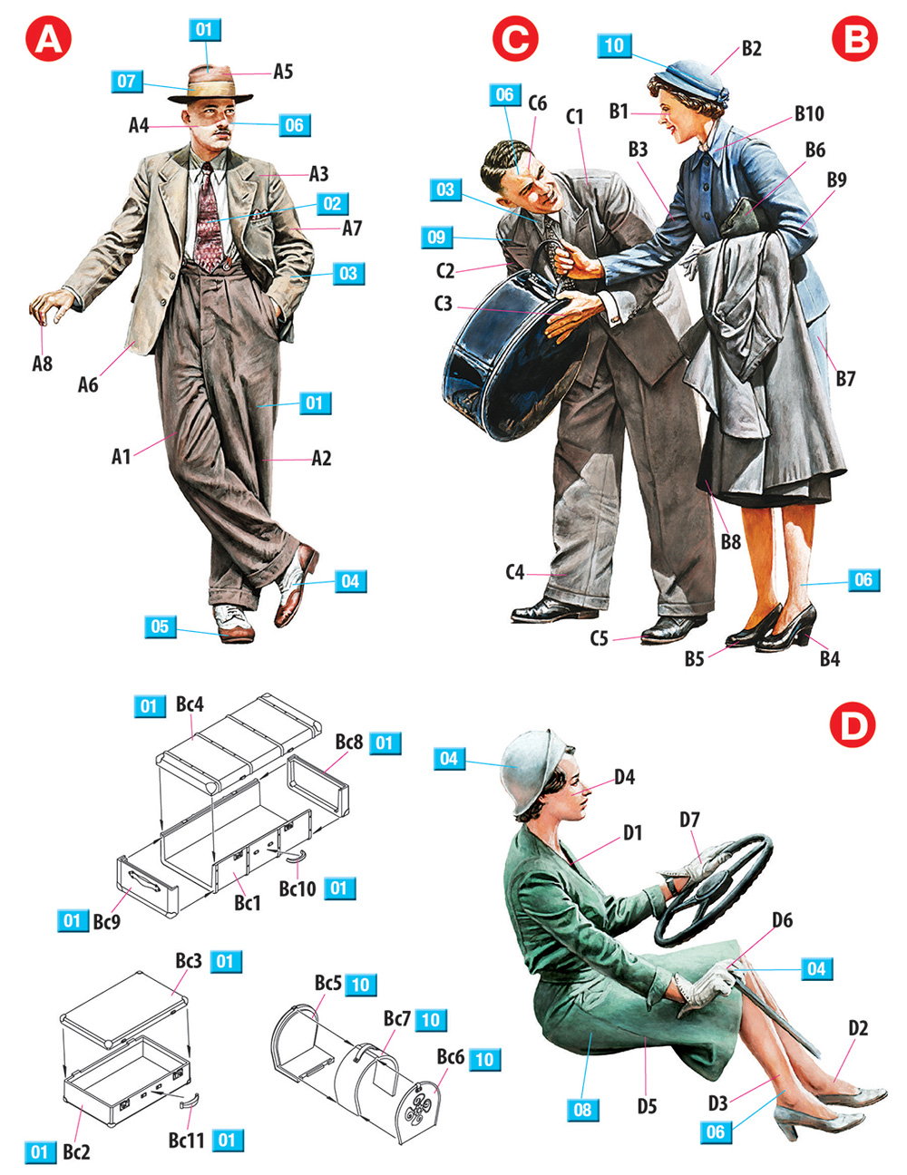 ●「自動車で旅行する民間人 1930-40年代」を1/35スケールで再現したプラスチックモデル組立キット。