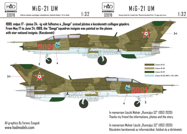 「MiG-21UM ハンガリー空軍 #5091 デカール デカール (HAD MODELS 1/32 デカール No.32078 )」です