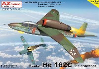 主翼は後退翼、新設計のV字型の尾翼を装備したハインケル He162Cを1/72で再現、東ドイツ空軍機などのマーキング3種