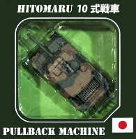 陸自の最新主力戦車、10式戦車をノンスケールで再現した完成品、プルバック走行にあわせてランダムにスラローム、砲塔旋回するギミック搭載