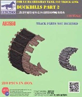 ブロンコモデル社の履帯に対応、T62、T74、T54、T54E等の1履帯のサイドコネクター部に接着し、ダックビルを装着した履帯を再現可能なパーツセット