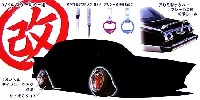 再版、深リム仕様のてっちんホイールとひっぱりタイヤを1/24で再現、シート、スカGテールランプ、ナンバー用デカールなどの旧車ドレスアップパーツもセット