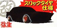 再版、深リム仕様の弥生ホイールとひっぱりタイヤを1/24で再現、シート、スカGテールランプ、ナンバー用デカールなどの旧車ドレスアップパーツもセット