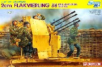 地上軍の対空兵器として連合軍に畏怖された20mm対空機関砲Flak38の4連装型を1/35で再現、牽引トレーラーSd.Ah.52もセットされています