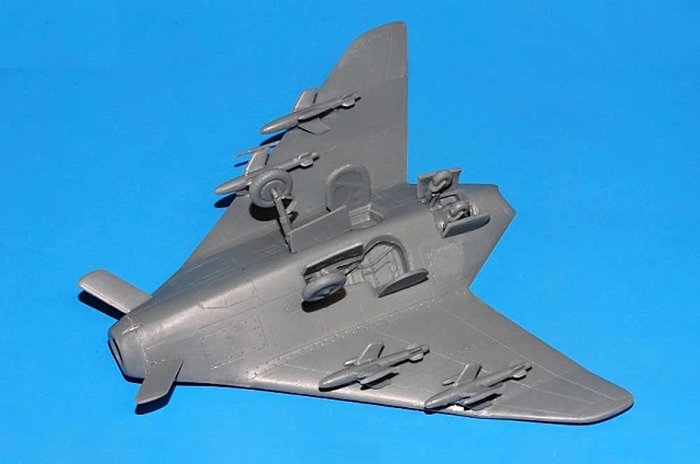 ●全翼機のような後退翼を備え、機体中央に「ハインケル HeS011 ジェットエンジン」を搭載、エンジンを避けるように左側に配置したコクピットや機首のカナード翼などのペーパープラン上の特徴を反映した内容となっています。