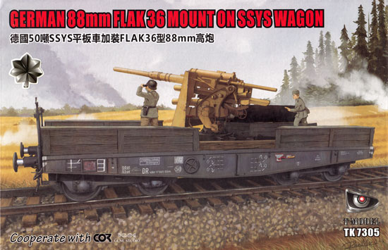 「ドイツ 重平貨車 50t Ssys w/88mm FlaK36 シルバーオークリーフセット (プラモデル) (ティーモデル 1/72 ミリタリー プラモデル No.TK7305-S )」です